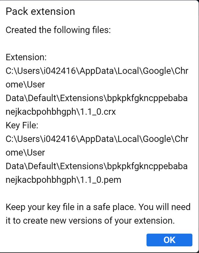 要备份这些文件夹,只需在Chrome里点击按钮“Pack extension”: