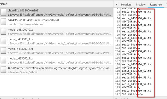 那么这个片段一共有多少个片段呢?在所有片段开始下载之前,有这样一个请求:chunklist即是视频片段的清单。
