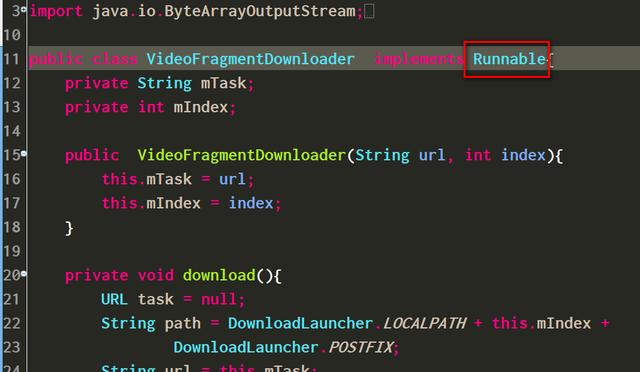 1. 首先实现视频片段的下载逻辑,新建一个类,实现Runnable接口。