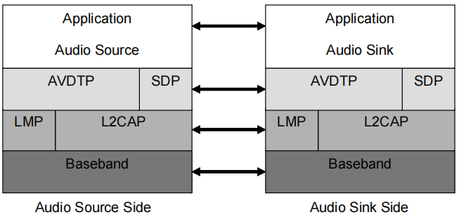 如上图所示,A2DP依赖于通用访问配置文件(GAP),以及通用音频/视频分发配置文件(GAVDP),它定义了建立音频/视频流所需的程序。A2DP定义了特定于音频流的参数和过程。GAP和GAVDP中定义的术语、用户界面和过程适用于本配置文件,除非另有明确说明。