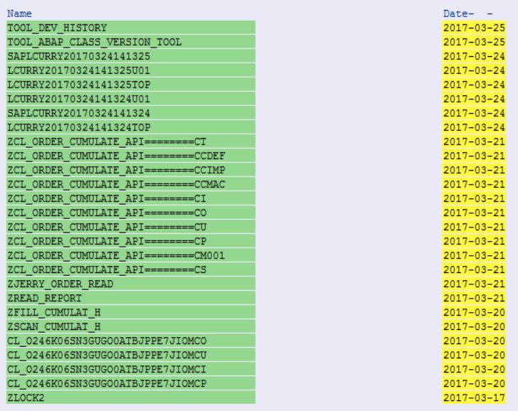 比如项目经理想查看名叫WANGJER的顾问从2017年3月1日到3月25日这些天到底在系统里做了哪些开发,只需要执行这个工具就能得到清单。