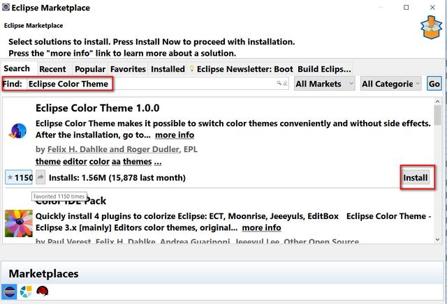 在搜索框里输入Eclipse Color Theme,点Go,马上就得到搜索结果。点Install安装: