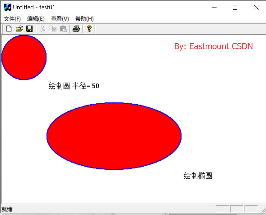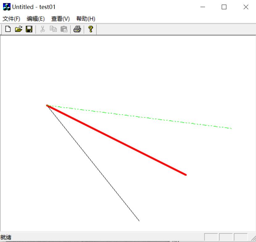 运行结果如下图所示,注意定义画笔后需要选择画笔SelectObject(),才能使用。