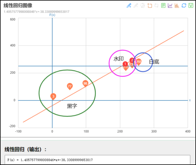 当然这个[217,217,217]也不是固定的,只是一个范围。为了方便调整,我选取了一些像素点,做了一个线性回归。