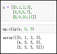 可以看到,数组x中的所有数限定到范围0和5之间。为啥要介绍这些函数呢,接着往下看。
