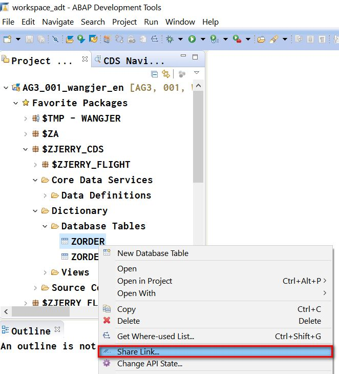 比如任何一个在ADT里能够查看的资源,都有一个所谓的ADT Link,通过菜单Share Link查看: