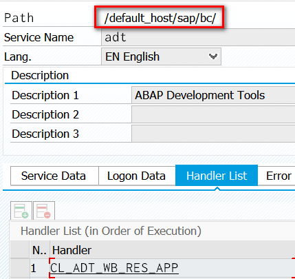 如果想自己调试这些后台操作的具体实现,用SAP GUI登录ABAP后台,使用事务码SICF找到节点**/sap/bc/adt**: