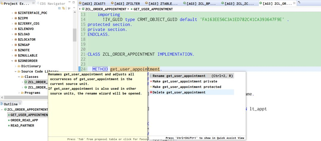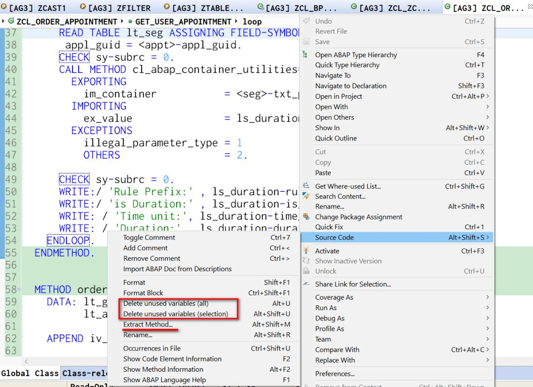 快速删除一个方法里所有定义了但未使用的局部变量,这个功能很实用,SAP GUI不支持。