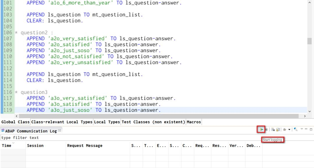 这种Restful API的消费行为可以通过打开ADT里的ABAP Communication Log视图来观察。点击Start logging按钮: