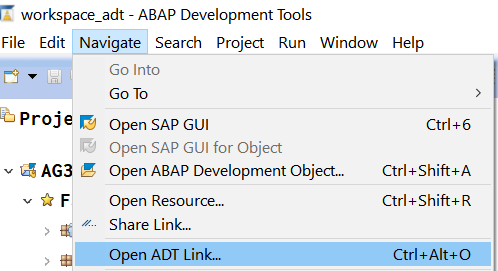 通过Open ADT Link菜单,输入上述ADT Link,能直接打开对应的资源,而不需要像SAP GUI那样,需要先运行正确的事务码,进入事务码之后再打开资源。