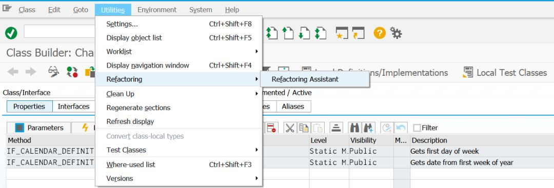 在Jerry的SAP GUI 740版本里,重构向导通过Utilities菜单进入。