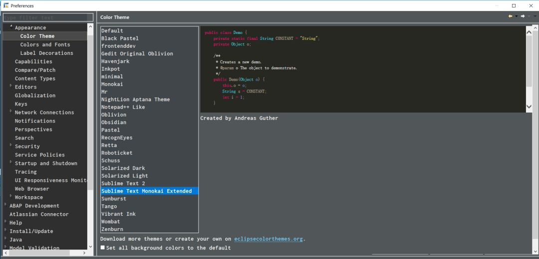安装一个名叫Eclipse Color Theme的插件,就可以使用这个插件预置好的几十套主题,真正做到一年54周每周换一套了。程序猿衣着可以随便,但IDE或者代码编辑器决不能随便。