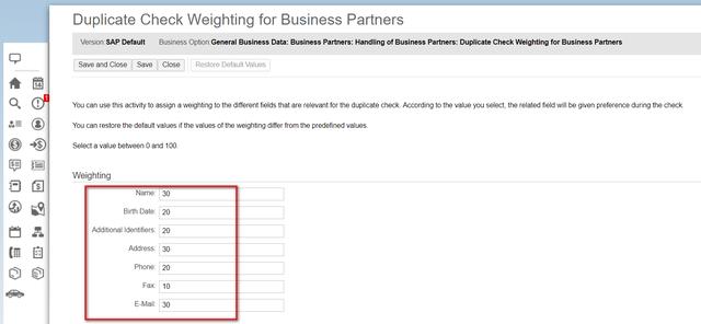 ‘Weak – Duplicate Check for Business Partners’: 70%