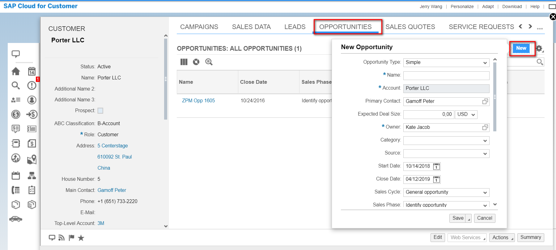 在SAP CRM Fiori的Account应用里,直接在Account页面创建商机: