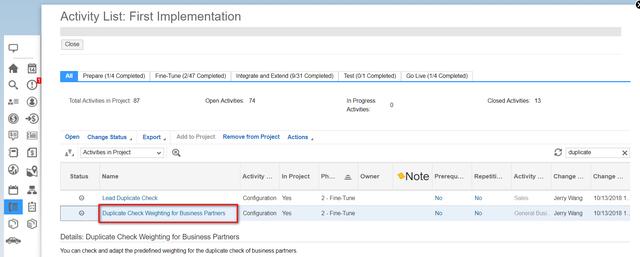 ‘Medium – Duplicate Check for Business Partners’: 80%