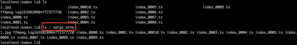 下面简单看一下 xargs 命令的其他用法,打印文件名字符串,具体效果如下图所示: