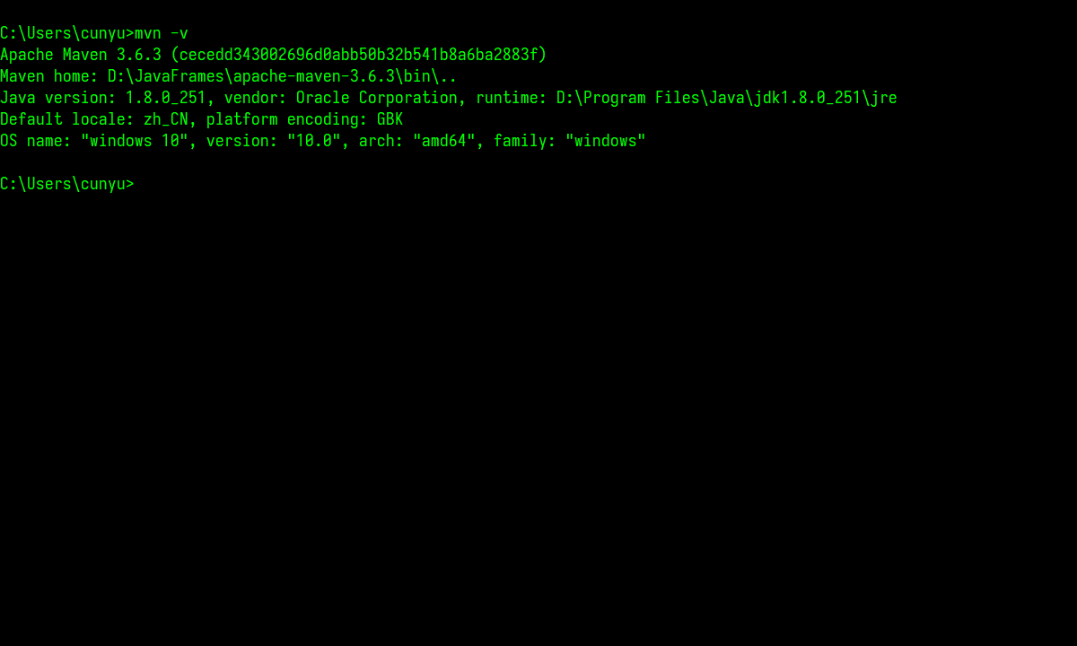 当我们配置环境变量之后,此时就可以打开一个新的 cmd 窗口,然后利用如下校验命令来测试我们的 Maven 是否安装成功,安装成功则会出现如下提示。