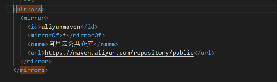打开 apache-maven-xxx/conf/ 目录下的 settings.xml 文件,然后在 mirrors 节点下加入如下配置: