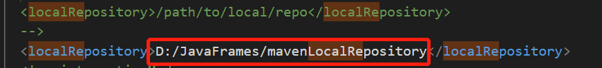还是打开 apache-maven-xxx/conf/ 目录下的 settings.xml 文件,然后将如下路径修改为自己要设置的本地仓库,比如我的本地仓库路径如下图: