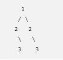 但是下面这个 [1,2,2,null,3,null,3] 则不是镜像对称的,如下所示: