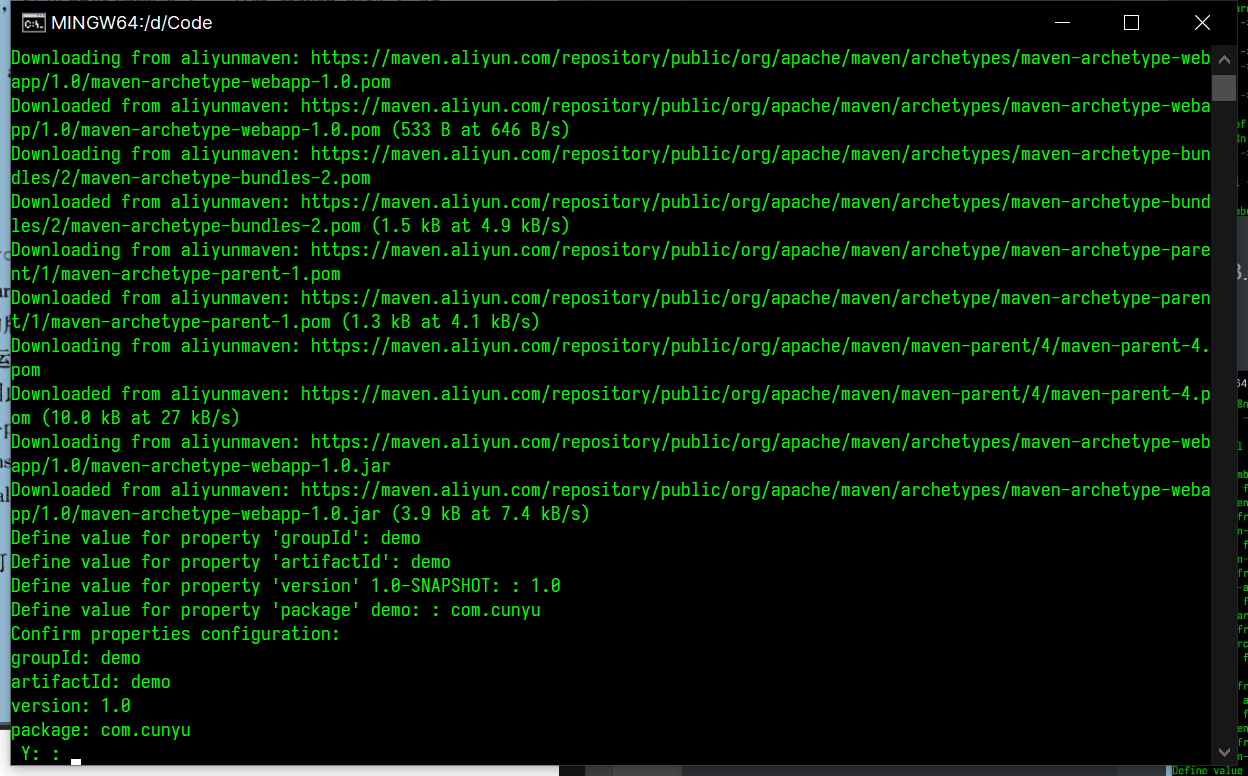- 首先进入你要创建项目骨架的目录,然后执行如下命令: