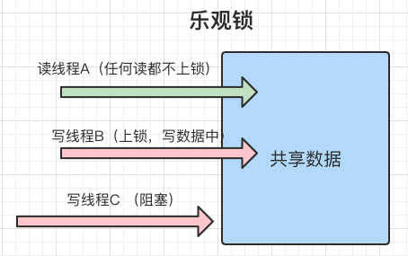 乐观锁总是假设最好的情况,每次去拿数据的时候都认为别人不会修改,所以不会上锁,但是在更新的时候会判断一下在此期间别人有没有去更新这个数据,可以使用版本号机制和CAS算法实现。乐观锁适用于多读的应用类型,这样可以提高吞吐量,有任何一线程对数据进行写操作都会上锁;也就是读的时候不上锁,写的时候才上锁,