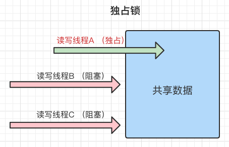 独占锁是指锁一次只能被一个线程所持有。如果一个线程对数据加上排他锁后,那么其他线程不能再对该数据加任何类型的锁。获得独占锁的线程即能读数据又能修改数据。