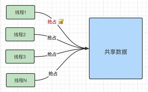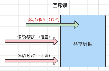 互斥锁一次只能有一个线程拥有互斥锁,其他线程只能等待,和悲观锁和独占锁类似