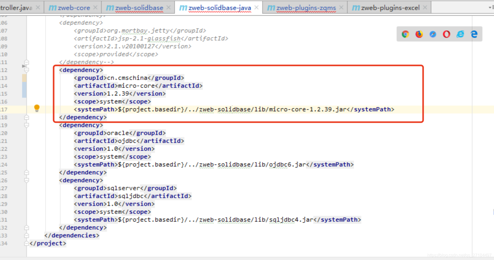 一开始是在项目中导入了本地的jar包。发现没用