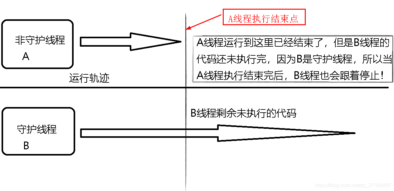 比如说有2个线程,一个非守护线程A,另一个守护线程B,那么在运行过程中,如果线程A已经结束工作了,B线程也会停止运行;