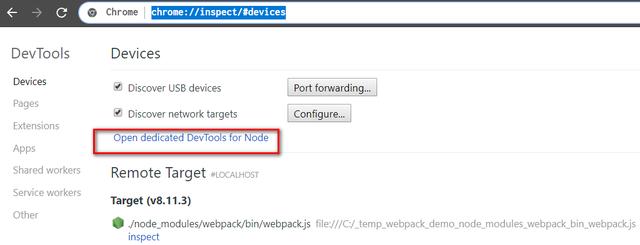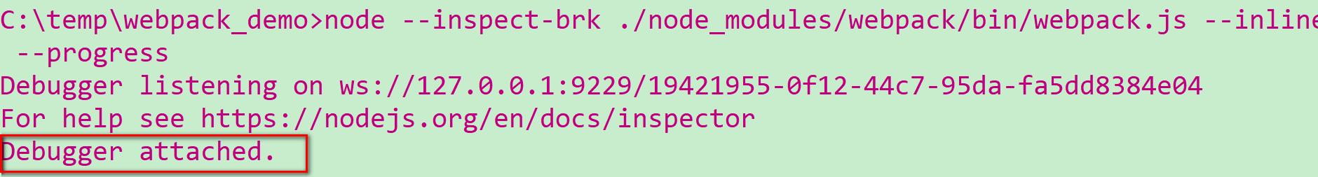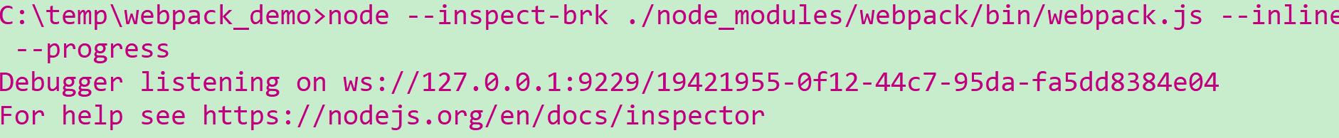 node --inspect-brk ./node_modules/webpack/bin/webpack.js --inline --progress