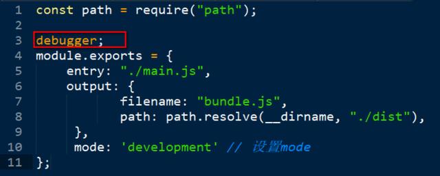 然后点一下Chrome调试器里的“继续执行”,断点就提留在我们设置在webpack.config.js里的debugger断点了。