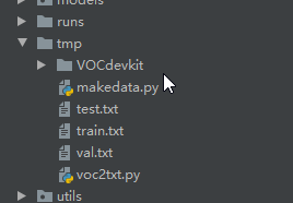 在tmp文件夹下面新家voc2txt.py文件,将voc的数据转为txt数据。