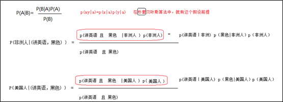 通俗来说比如,在某条大街上,有100人,其中有50个美国人,50个非洲人,看到一个讲英语的黑人,那么我们是怎么去判断他来自哪里?