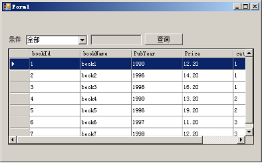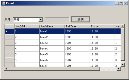 - 初始运行条件下拉框默认选择全部,同时文本框不可编辑,DataGridView显示全部数据