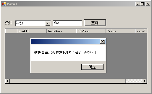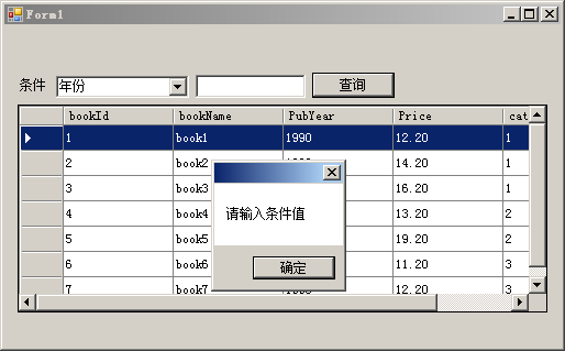 2.条件下拉框选择年份或名称,此时文本框变为可用,单击查询按钮时,如果文本框没有输入内容,则提示请输入条件