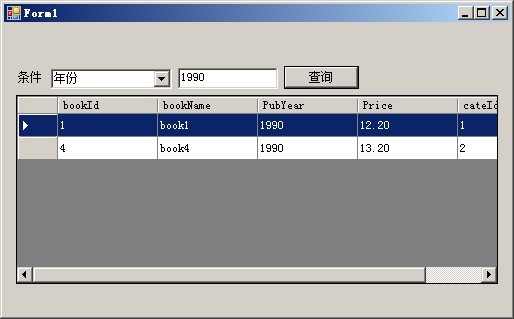 条件下拉框选择年份时,在文本框中输入年份,然后点击查询,则会查询年份等于所填值的数据
