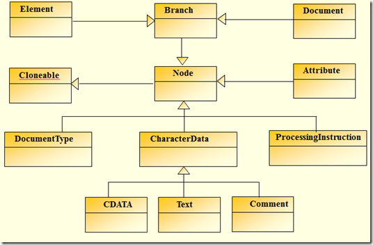 先来看看dom4j中对应XML的DOM树建立的继承关系