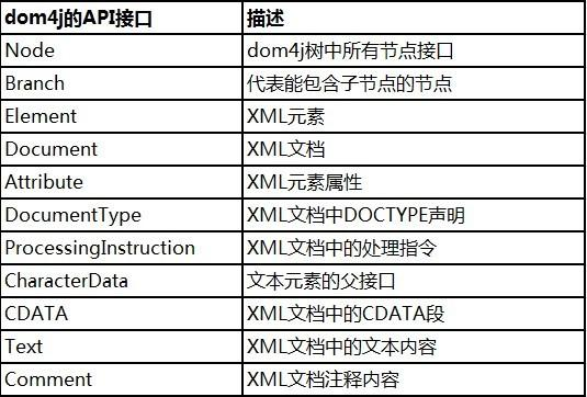 针对于XML标准定义,对应于图2-1列出的内容,dom4j提供了以下实现: