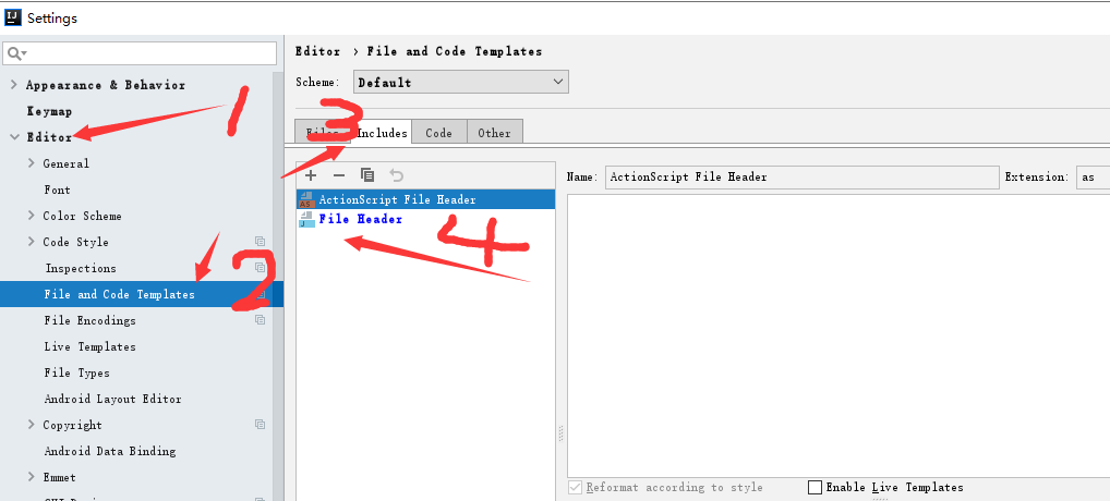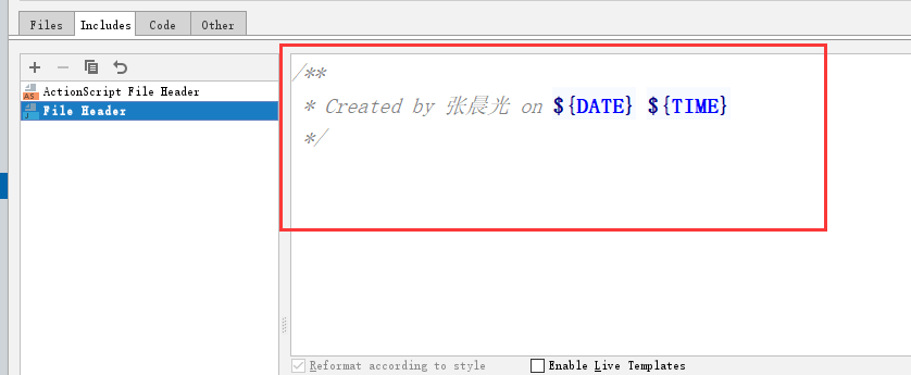 2.Settings--Editor-->File and Code Templates->Include->File Header-"添加以下代码"