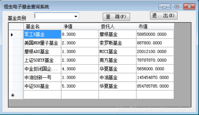 某基金公司拟开发一套基金委托管理系统,要求使用.NET WinForms技术进行开发,其中保存在mysql数据库中的信息如下: