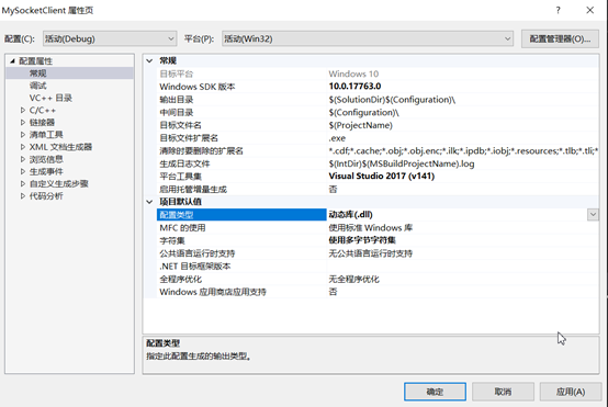 然后右键项目,选择属性 将配置类型改为动态库(.dll)