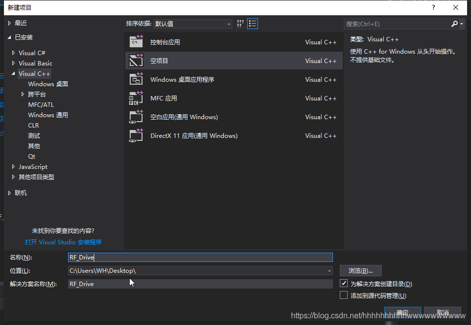新建空项目,命名为RF_Drive,这个作为底层的驱动。