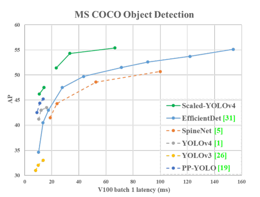 在提出的scale - yolov4中,本文讨论了线性缩放模型的上界和下界,并分别分析了小模型和大模型缩放时需要注意的问题。因此,我们能够系统地开发YOLOv4-large和yolov4 -tiny模型。Scaled-YOLOv4能够在速度和精度之间实现最好的平衡,能够在15 fps、30 fps和60fps的影片以及嵌入式系统上进行实时对象检测。