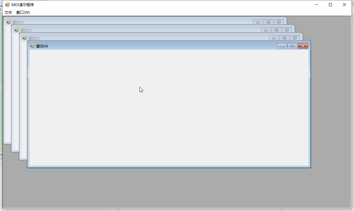 所有 MDI 子窗口均层叠在 MDI 父窗体的工作区内。 |