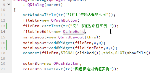 fileBtn->setText(tr("文件标准对话框实例 "));