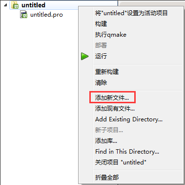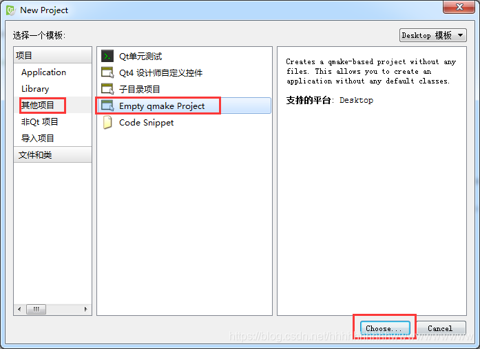 选择【choose】进行下一步。设置项目名称和路径 —> 选择编译套件 --> 修改类信息 --> 完成(步骤同上),生成一个空项目。在空项目中添加文件:在项目名称上单击鼠标右键弹出右键菜单,选择【添加新文件】