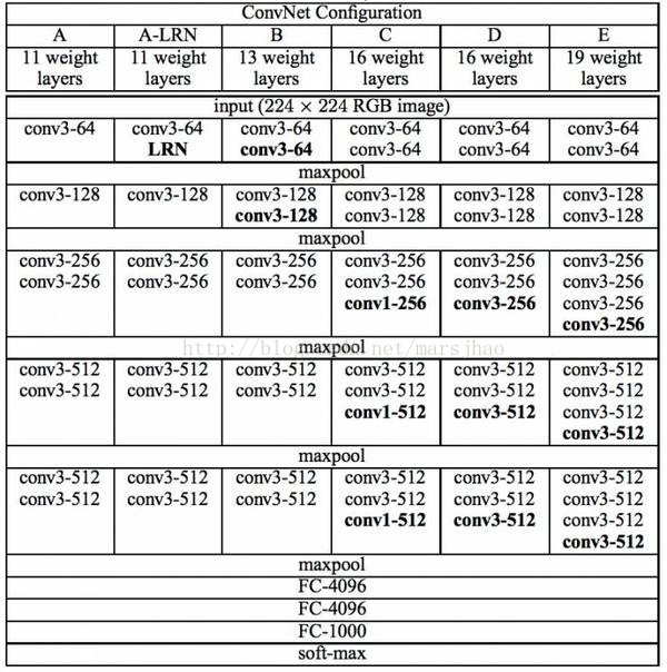 上图是VGG16-3模型,在原论文中的VGGNet包含了6个版本的演进,分别对应VGG11、VGG11-LRN、VGG13、VGG16-1、VGG16-3和VGG19,如下图: