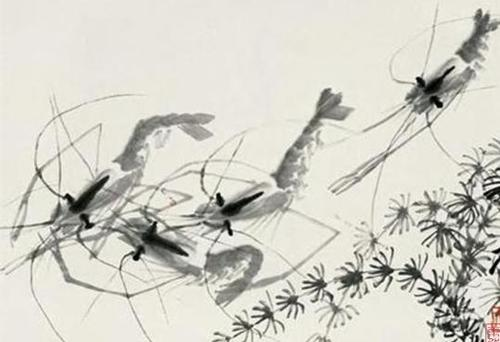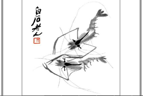 上面的描述可能有点抽象,让我们用收藏齐白石作品(齐白石作品如下图所示)的书画收藏家和假画贩子的例子来说明。假画贩子相当于是生成器,他们希望能够模仿大师真迹伪造出以假乱真的假画,骗过收藏家,从而卖出高价;书画收藏家则希望将赝品和真迹区分开,让真迹流传于世。齐白石画虾可以说是画坛一绝,历来为世人所追捧。