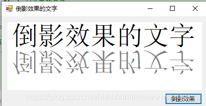 思路:通过使用Graphics对象的MeasureString方法和ScaleTransform方法来绘制倒影效果的文字。